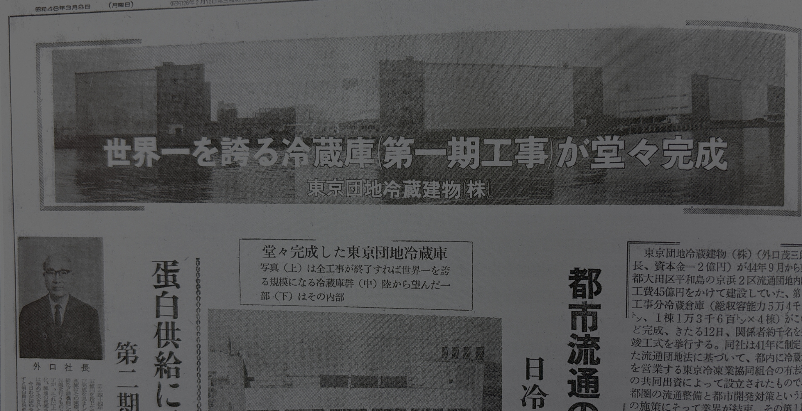 1万トンでも超大型倉庫と称された時代に5万トンを超える規模を誇る冷蔵倉庫の建設に新たな社会インフラとしての期待が寄せられることとなった。
